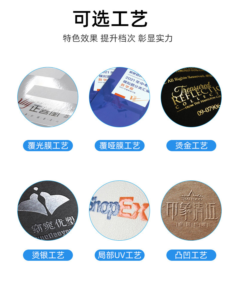 印刷紙張:銅版紙、雙膠紙、啞粉紙、珠光紙、其他藝術(shù)紙(藝術(shù)紙種類較多我們可以免費提供紙樣供您選擇)