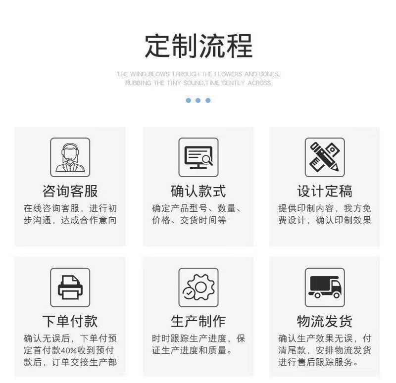 6、完善的售后服務:訂單實時追蹤跟進,直至貨物送達您的手中對我們的質量和服務滿意為止!