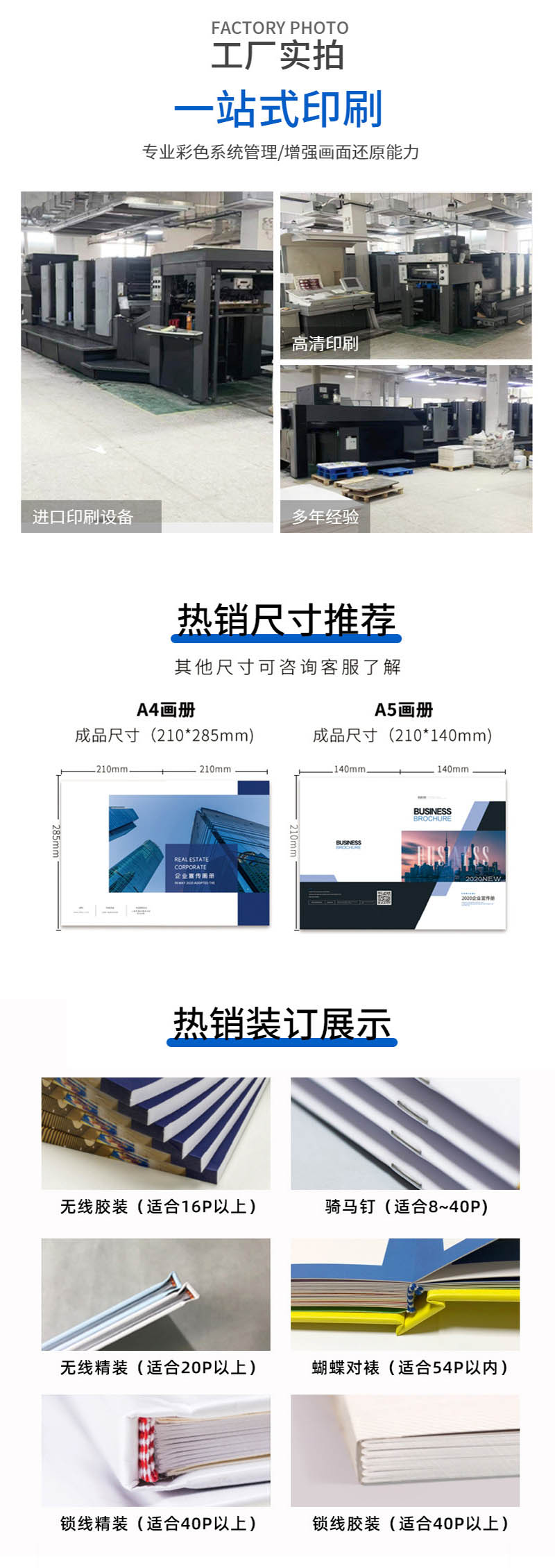 裝訂工藝:騎馬釘、無(wú)線(xiàn)膠裝、鎖線(xiàn)膠裝、蝴蝶裝、鎖線(xiàn)精裝、線(xiàn)圈等