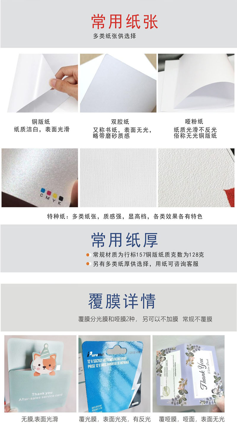 印刷紙張:銅版紙、雙膠紙、啞粉紙、珠光紙、其他藝術紙(藝術紙種類較多我們可以免費提供紙樣供您選擇)